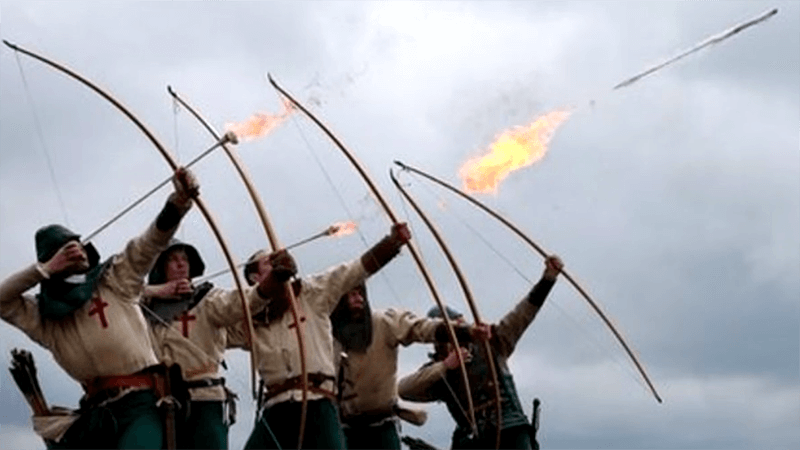 The main problem with fire arrows is trying to get them to the target while still on fire all without burning the archer’s hand or bow. The primary idea shown in movies and television seems to be to wrap the arrowhead or just behind it, with rags soaked in pitch or another flammable substance. Unfortunately, most shots of any length will put out the flame not to mention the danger of the fire damaging the wooden arrow shaft. Arrowheads with cages to hold coals were developed but the biggest problem with them is that the bodkin point has to be shortened to prevent the arrowhead from being too forward heavy, lessened its penetrative power. If a thicker arrow shaft is used to compensate, the arrow can become too heavy to go far at all. For a more in depth look at these issues, I recommend Lindybeige’s video here. I will say I have seen fire arrows shot and usually they cannot go further than a few feet without going out.