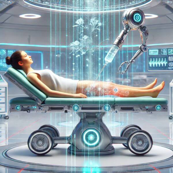 Healing Pods: Full-body immersion in a healing chamber could stimulate cellular repair and realign damaged structures.