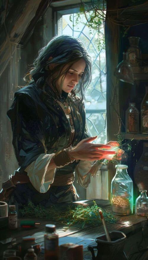 Example: A healer brews an infusion of yarrow and comfrey to treat a soldier’s wound, then adds a drop of phoenix ash to awaken the herbs’ dormant magic. The result heals flesh but scars the soul, an ancient trade-off forgotten by most.